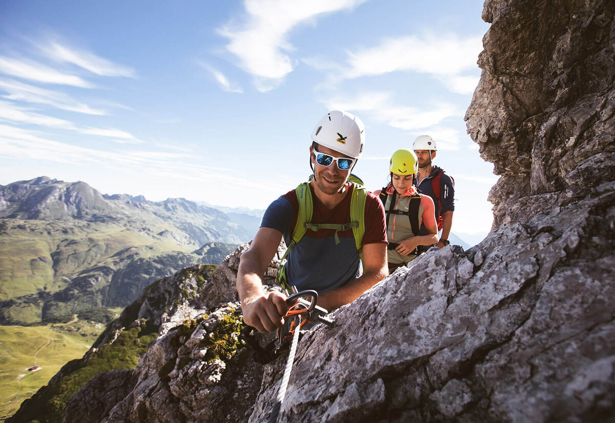 Der Karhorn-Klettersteig führt vom Wartherhorn-Sattel zum 2.416 m hohen Karhorn-Gipfel. Seit der Erweiterung 2009 bietet der Steig abwechslungsreiche Touren für Einsteiger und erfahrene Kletterer. Der familienfreundliche Ostgrat ermöglicht einen einfachen Einstieg, während der Gipfel mit spektakulären Ausblicken auf den Bregenzerwald, das Lechtal und Warth-Lech belohnt.